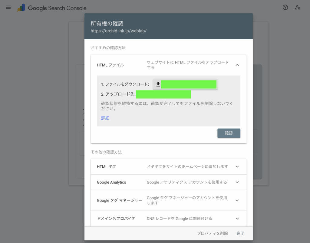URLを入力すると、次に「所有権の確認」画面が表示されます。