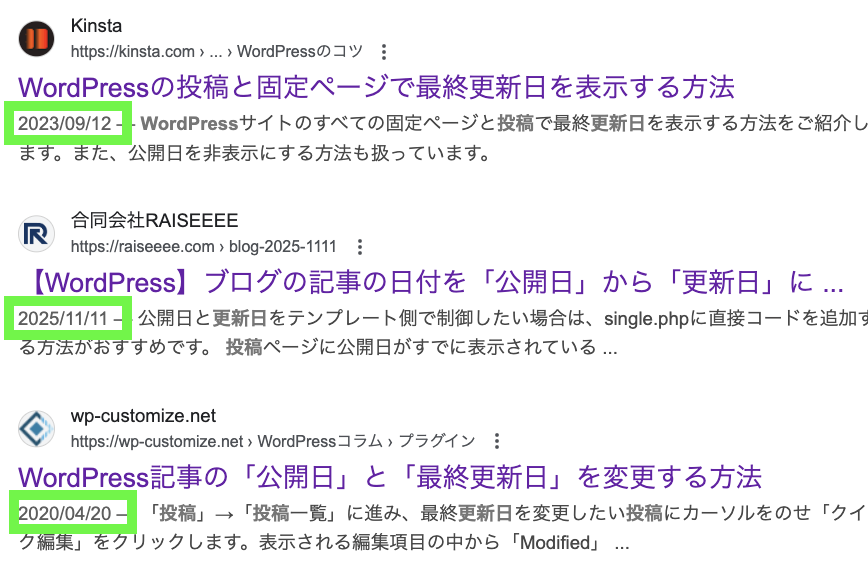 | 変更点 | 表示される日付が「公開日」→「更新日」に自動で切り替わる |
